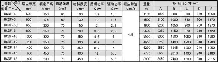 RCDF系列油冷自卸式电磁除铁器是在RCDE系列油冷悬挂式电磁除铁器的基础上增加了驱动电机、滚筒、带刮板的卸铁胶带等组成的卸铁机构。具有磁力大。散热快、防尘、防雨、耐腐蚀、连续工作、维护费用低等优点。问世以来,以操作使用方便,故障率低、维护量小等特点赢得了广大用户的好评。 注:安装方式请参考RCDC洗了风冷自卸式电磁除铁器。倾斜式安装订货时应注明倾斜角度。