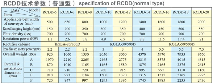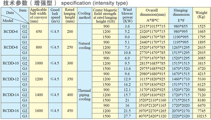 RCDD系列除铁器磁箱采用同心圆结构,磁场强、漏磁少。配上机架即成为自动卸铁型除铁器,悬挂在皮带输送机上方连续作业。采用全封闭结构,适合户外作业。由于该类除铁器磁势大,适合于输送带速较高,料层较厚的生产线上除铁。这类型的除铁器具有以下特点: