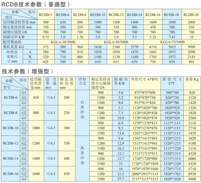 | RCDB自冷全封闭人工卸铁型悬挂式电磁除铁器系列(连续工作制100%) |